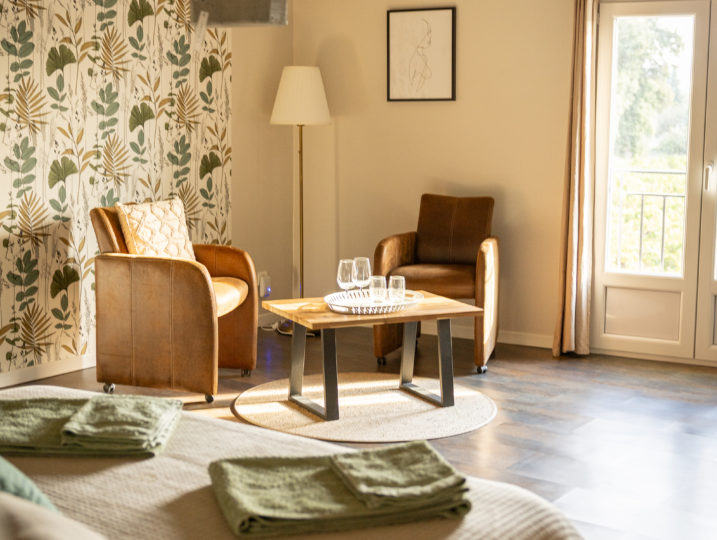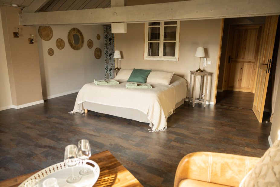 Das Viognier-Zimmer ist ein Doppelzimmer in der Herrenhaus. Es bietet Blick auf den Dentelle de Montmirail.