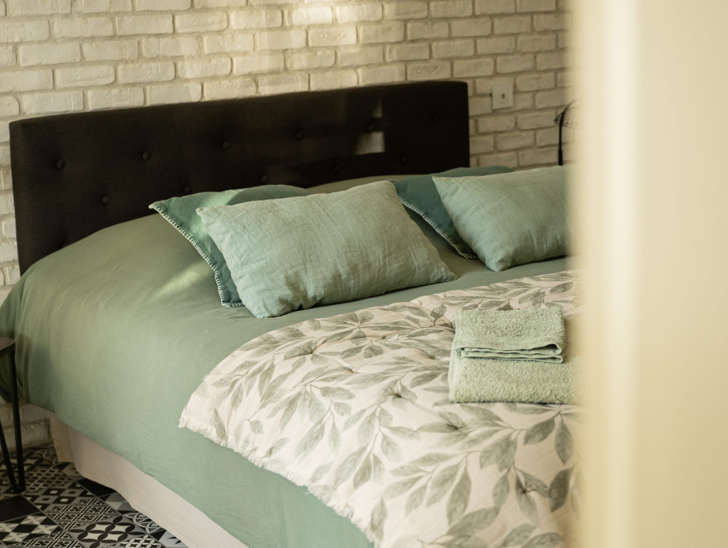 La chambre Mourvèdre est une chambre pour deux personnes avec une salle de bain attenante. Elle donne sur