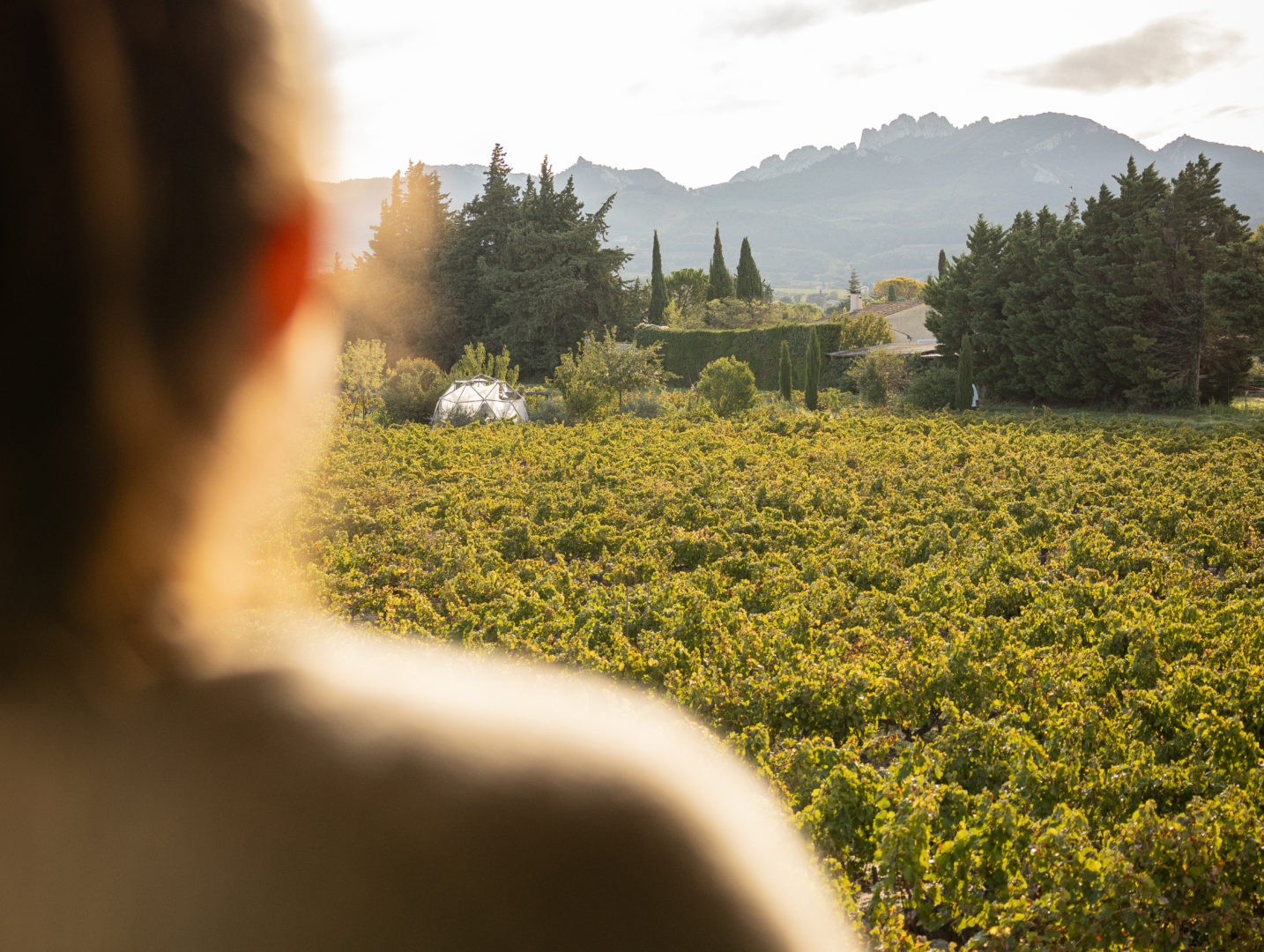 Décorée dans un style « brocante chic”, elle offre une vue sur les dentelles de Montmirail et les vignes.